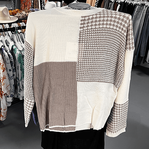 Lightweight jumper in neutral tones withchanging patterns through out.